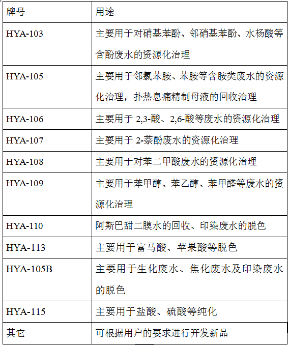 瀚宇树脂科技公司多年来致力于化工及医药中间体废水的治理及资源化研究与应用,针对不同类型的废水,开发研制出HYA系列专用吸附树脂并成功得到广泛应用。