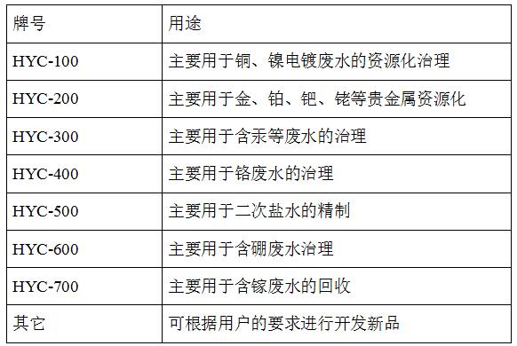 瀚宇树脂科技公司多年来致力于电镀及贵重金属资源化研究及应用,针对不同类型的废水,开发研制出HYC系列专用螯合树脂并成功得到广泛应用。